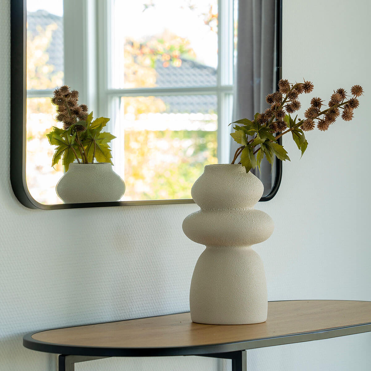 „Žeminijona Basana“ – tai ne tik vaza, bet ir skulptūrinis objektas, kuriame susilieja žemės ramybė, forma ir natūrali estetika. Jos organiškos linijos primena vėjo glostytas kalvas, o švelni, žemės tonų spalva sukuria harmoningą kontrastą tiek šviesiuose, tiek tamsesniuose interjeruose. Vaza puikiai dera su sausomis šakomis, laukų gėlėmis ar tiesiog kaip savarankiškas meno akcentas – tuščia ji kalba ne mažiau nei pilna. Kiekviena „Žeminijona Basana“ detalė – nuo formos iki paviršiaus tekstūros – kurta taip, kad suteiktų jaukumo pojūtį ir subtilų išskirtinumą. Tai vaza, kuri neiššaukia, bet prikausto žvilgsnį.